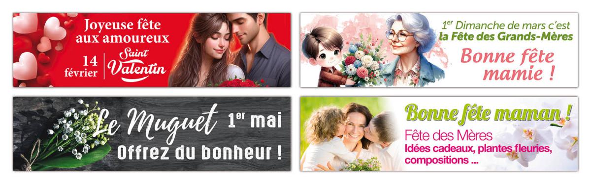 Découvrez nos supports pour animer votre magasin et pour faire de cette fête un succès. C'est supports sont spécifiquement créés pour votre activité (Fleuriste, jardinerie, horticulteur, producteur détaillant ...) Ils sont faciles à mettre en place.
